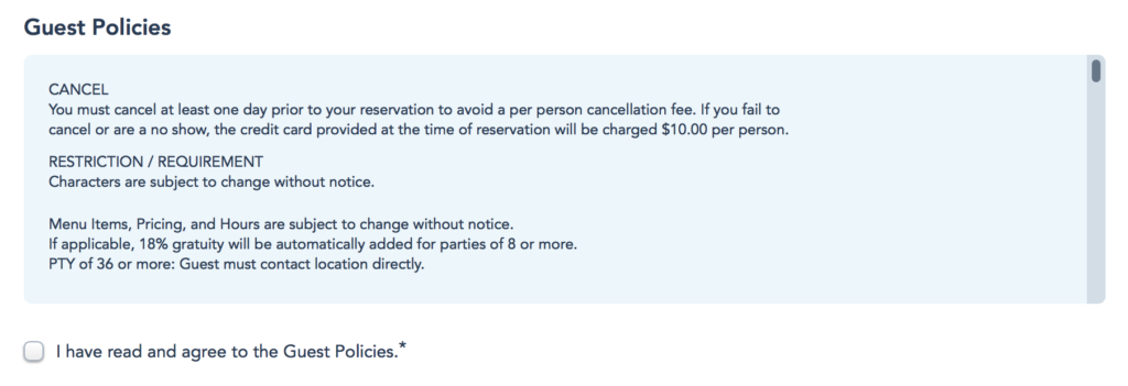 - キャンセル料は予約人数1人あたり10ドルだよ