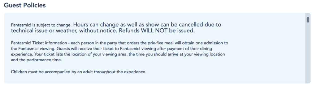 Fantasmic!の公演が関係してくるのでGuest Policiesがさっきとは少し違います。