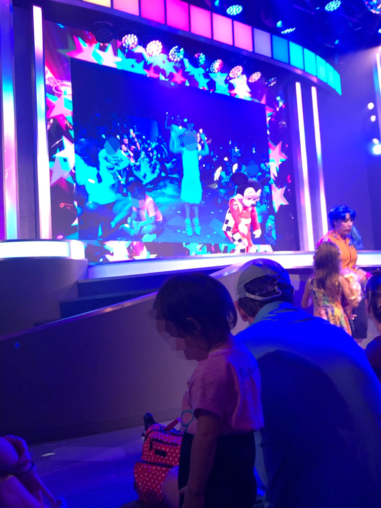 そうそう、ミッキーの後ろのディスプレイでは会場内の様子が映されてますので真ん中の方にいれば映るかもですね。