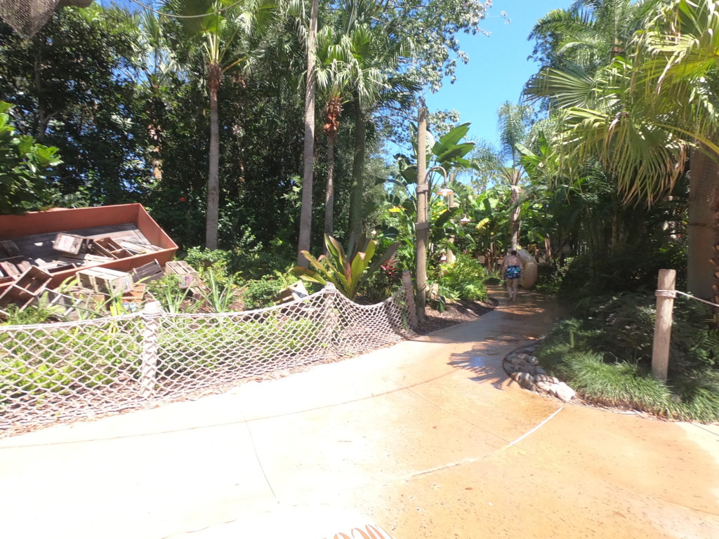 ちょっと分かりにくいですがKetchakiddee Creekから山の方に、Keelhaul Falls、Mayday Falls、Gangplank Fallsを見つつシンボルである山の上にある船の近くまで登ることができるようでしたのでプールで冷えた体を温めるついでに登ってみました。