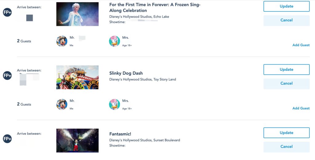加えてFantasmic!などの鑑賞券が付いたランチやディナーを予約している場合はそのショーと被らない様に注意も必要かと思います。