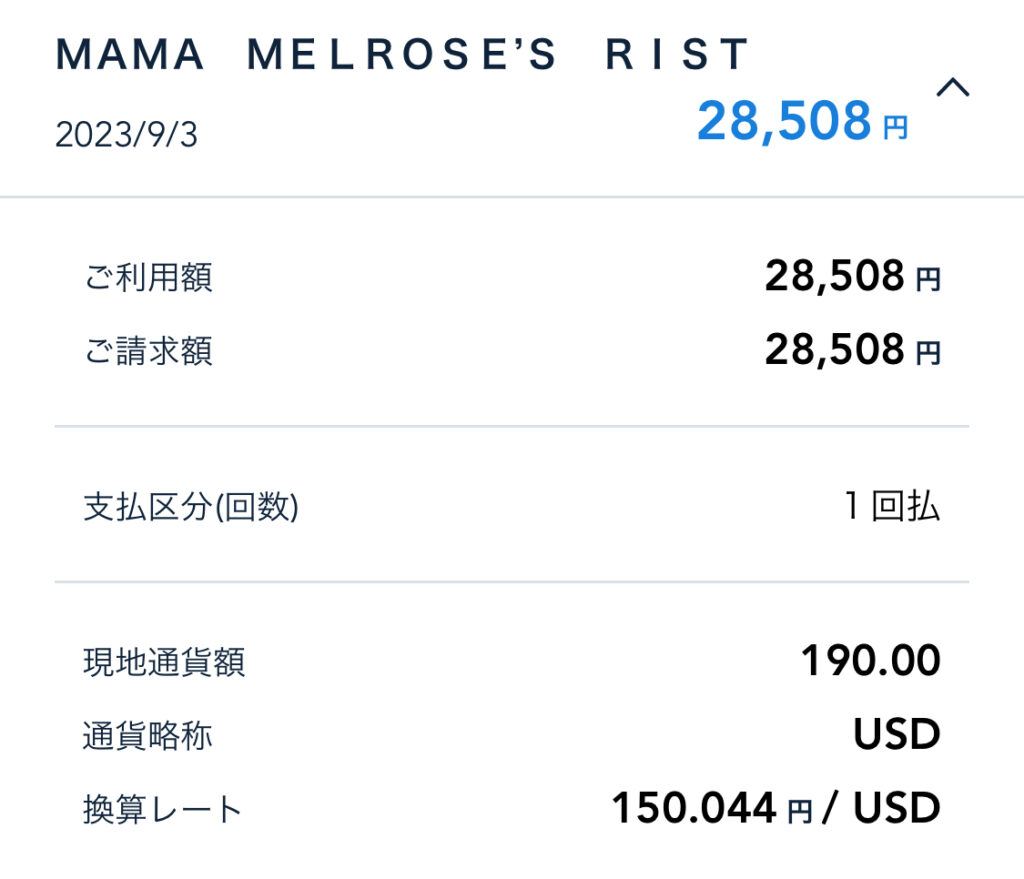 んで確かワインおかわりしたので160ドルぐらいにチップ入れて端数切って190ドルにした記憶がありますね…