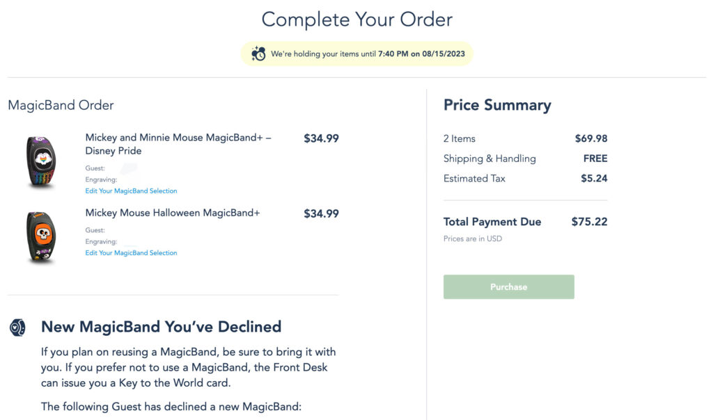買わない人は選ぶ時に名前の下のDecline a MagicaBandを押して進めば購入しないを選べます。